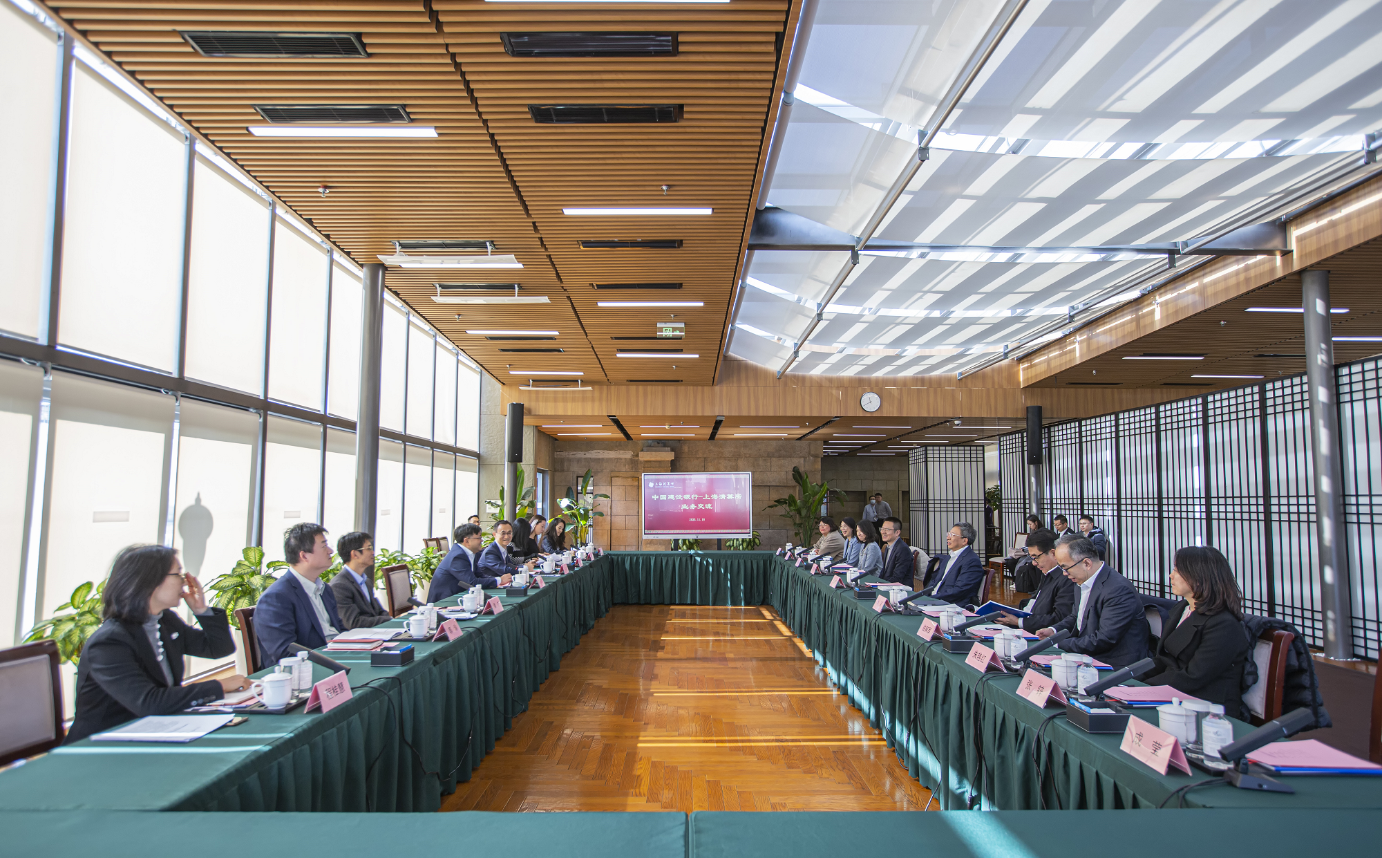 2025年11月18日,中国建设银行副行长纪志宏一行到访上海清算所并开展调研,上海清算所董事长马贱阳主持会谈。中国建设银行上海市分行行长刘军、总行董事会办公室主任薄银根、金融同业部总经理曲寅军、托管业务部总经理陈颖钰、金融市场部副总经理朱艳红,上海清算所总经理许再越、副总经理黄宁等参加会谈。