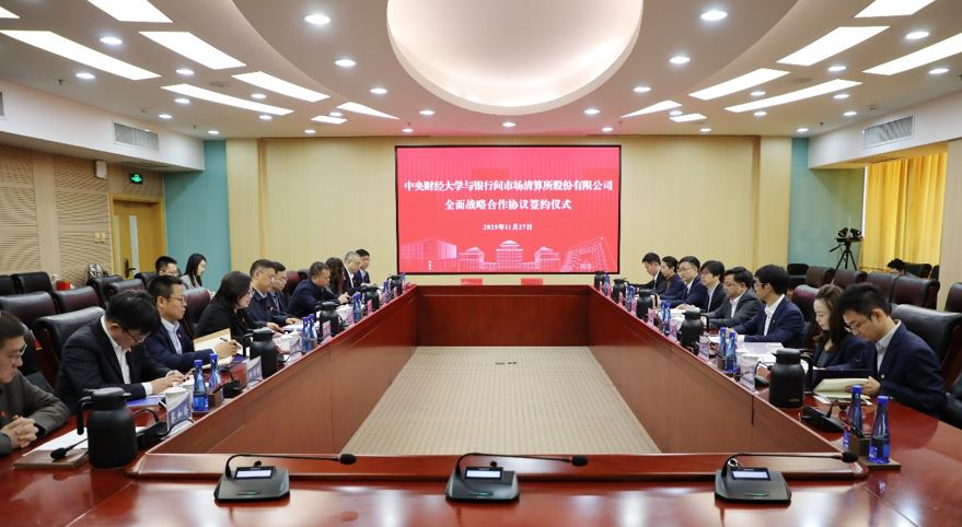 2025年11月27日,上海清算所与中央财经大学在北京签署全面战略合作协议。中央财经大学党委书记吴国生、党委副书记杨莹、副校长李建军,上海清算所董事长马贱阳、副总经理黄宁出席签约仪式。