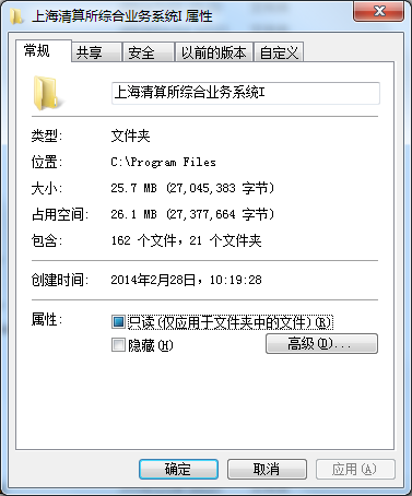 (1) 选中安装目录文件,右键菜单上选择“属性”,弹出如下对话框: