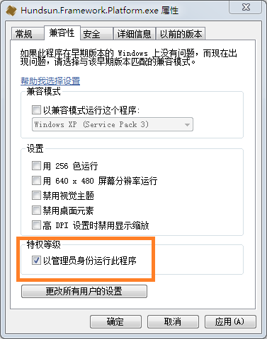 A:请设置快捷方式属性的兼容性为“使用管理员打开”;