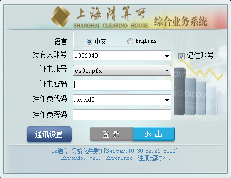 A:可能是后台服务未启动、或其他原因,请联系上海清算所。