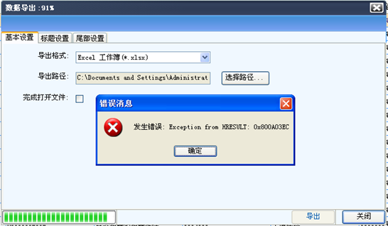 2.5.3 Q:界面的数据导出报异常:Exception from HRESULT: 0x800A03EC,如何操作?(如下图)
