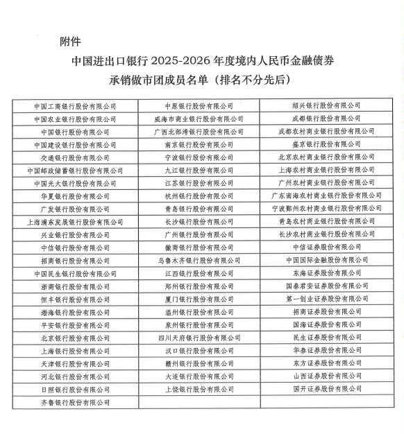 关于公布中国进出口银行2025-2026年度境内人民币金融债券承销做市团成员名单的通知