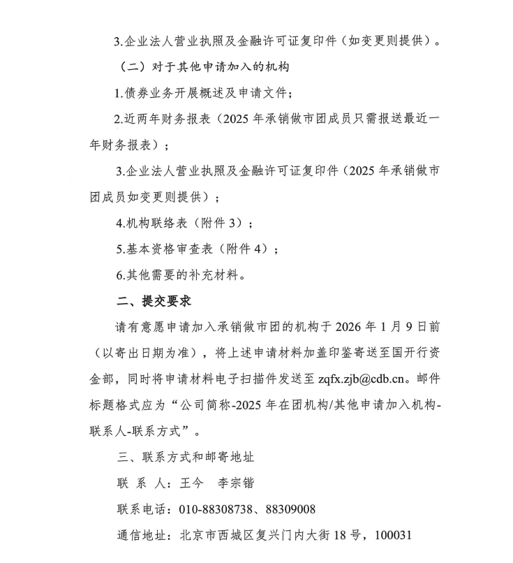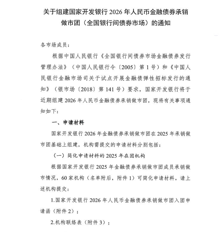 关于组建国家开发银行2026年人民币金融债券承销做市团(全国银行间债券市场)的通知