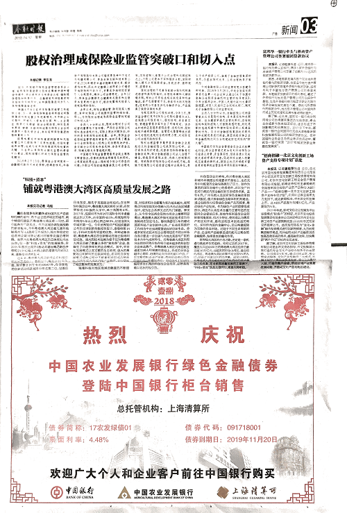 2018年4月9日,上海清算所、中国农业发展银行、中国银行合作推出农发行绿色金融债券柜台业务。广大个人和企业客户,首次能够通过商业银行柜台,购买中国农业发展银行在上海清算所发行登记的绿色金融债券。上海清算所推出这一创新业务,是联合市场各方加快建设多层次债券市场、倡导绿色发展理念的最新举措,也标志着上海清算所债券业务全面覆盖银行间债券市场、自贸区债券市场以及金融债券产品和非金融企业债券产品。当日,中国农业发展银行绿色金融债券柜台业务面向个人投资者实现销售193.33万元人民币。