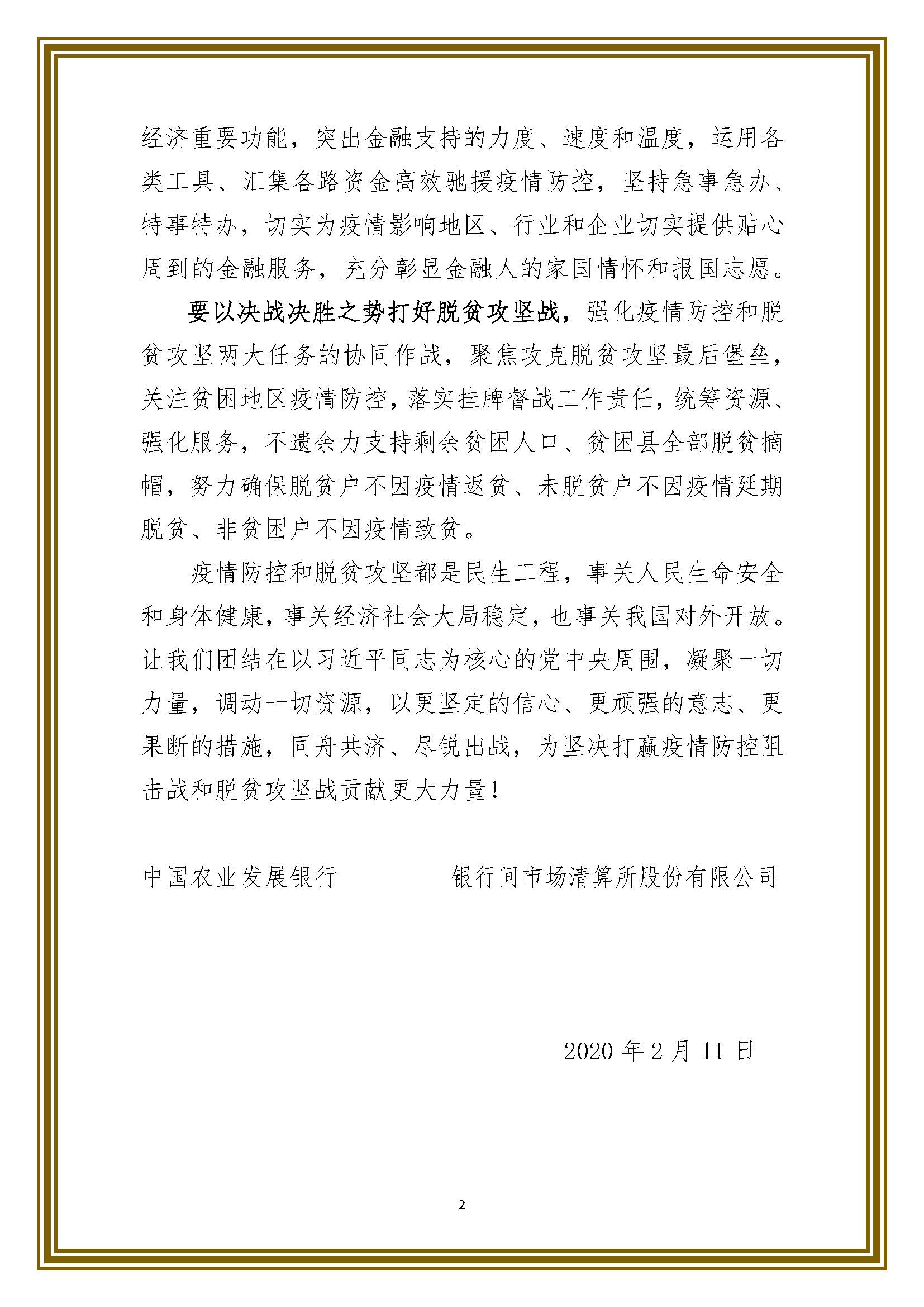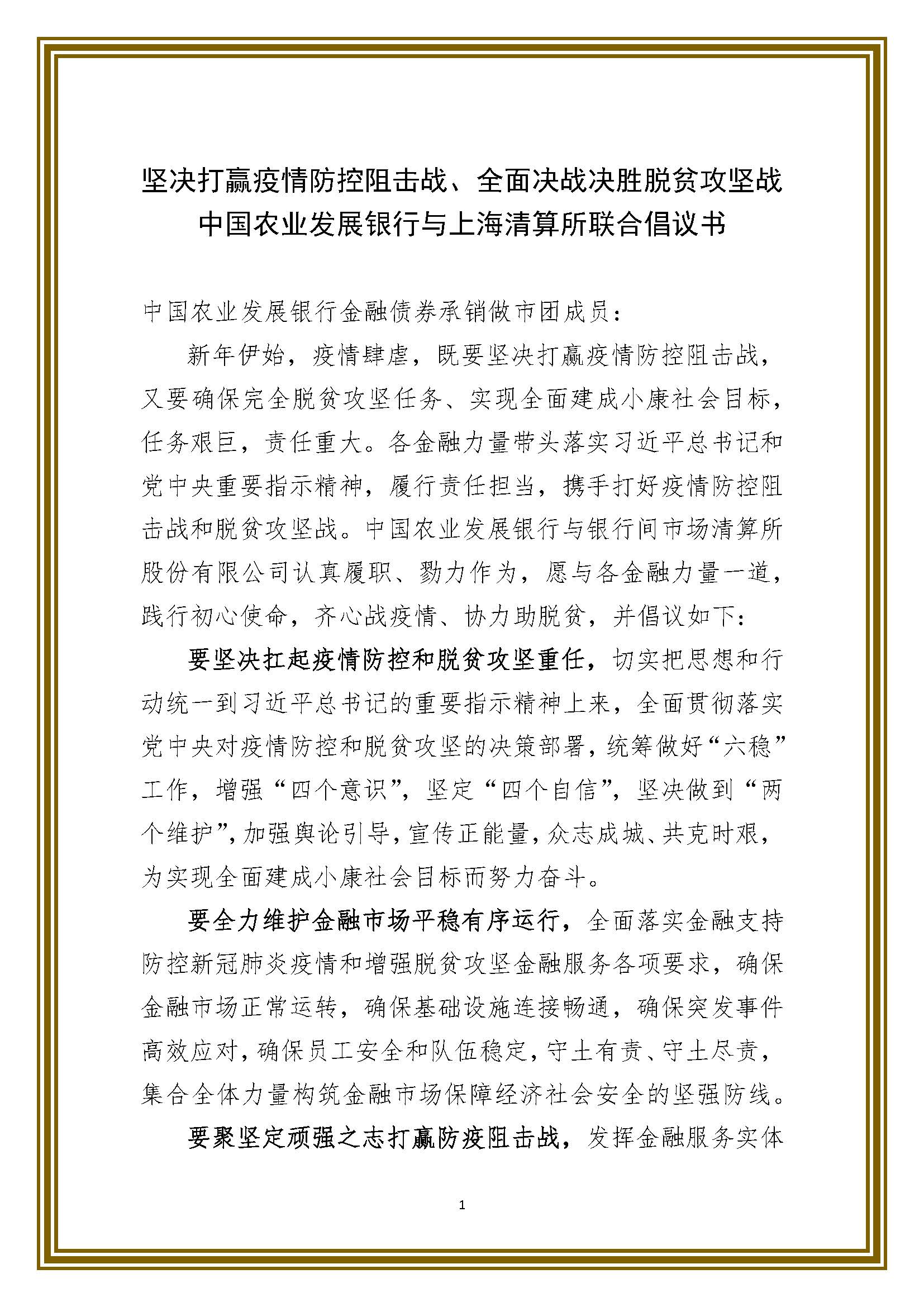 附件:坚决打赢疫情防控阻击战、全面决战决胜脱贫攻坚战中国农业发展银行与上海清算所联合倡议书