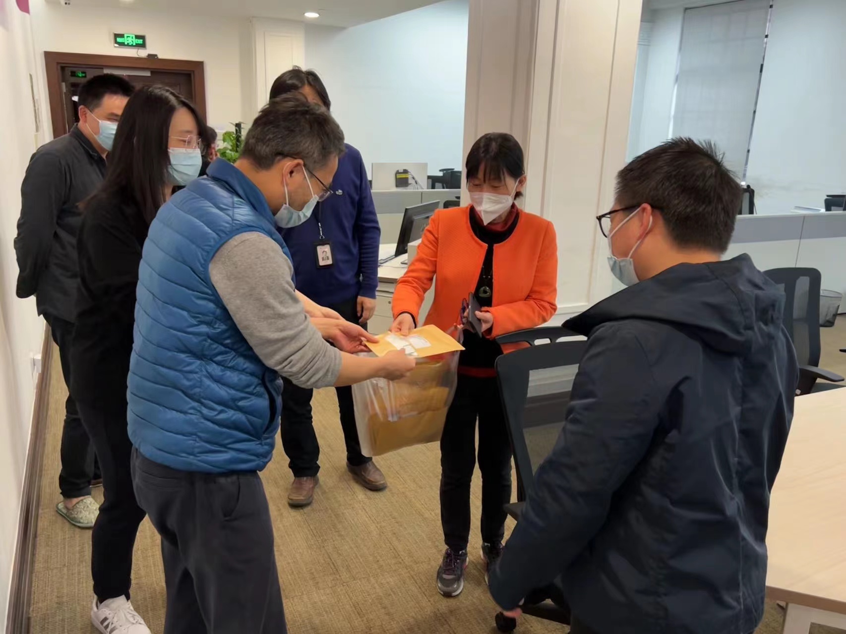 为做好对驻场员工的保障与关怀,综合保障人员也在竭尽全力。公司疫情防控工作领导小组办公室全力统筹协调各方资源、有效发挥上传下达作用,第一时间处理突发情况,牵头做好人员流动、物资分配等各项应急保障工作。值守期间,组织公司驻场员工进行2次核酸检测、3次抗原检测,及时调配发放中药冲剂等抗疫慰问物资,并时刻关注驻场员工身心健康,及时疏导化解员工顾虑。行政管理部孙永鑫等扎实做好餐厅、物业的协调保障,餐厅服务人员克服种种困难,保障驻场人员每日供给,提供可口饭菜;物业工作人员则每日对大楼进行全面消杀,为驻场人员营造安全舒心的办公环境。