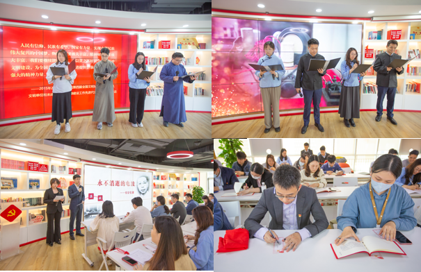 青年们共同聆听了“永不消逝的电波”情景党课,围绕“温”“故”“知”“心”四个板块缅怀革命先辈。青年们通过深情诵读《李白烈士最后一封家书》和《牺牲在黎明前》等作品,重“温”信仰之声;通过观看《跨越时空的回信》等纪录视频,回“故”英烈故事;通过朗诵《习近平总书记谈信仰》和制作信仰书签等,感“知”信仰力量;通过观看《初心》微视频、现场互动发送新时代电报等,开展初“心”讨论。沉浸式的情景党课使大家切身感受到老一辈共产党人用鲜血浇灌理想,用生命捍卫信仰的崇高精神,教育引导青年们坚定理想信仰、牢记初心使命。