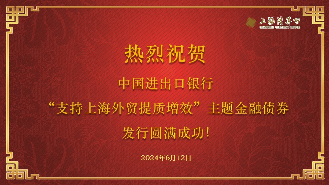 2024年6月12日,上海清算所成功支持中国进出口银行招标发行“支持上海外贸提质增效”主题金融债券,发行规模60亿元,债券期限1年,认购倍数4.16倍,市场认购踊跃。同日,双方联合举办业务合作交流会,上海市商务委员会、上海市委金融办、中国人民银行上海总部以及外贸企业相关领导代表出席会议。