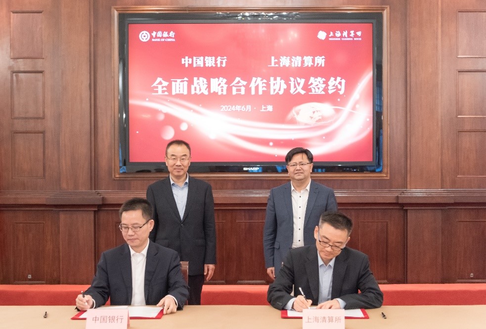 2024年6月19日,中国银行与上海清算所在沪签署全面战略合作协议。中国银行行长刘金与上海清算所董事长马贱阳出席活动并见证签约,中国银行上海总部党委副书记、上海市分行党委书记王晓和上海清算所总经理汪洪波代表双方签约,中国银行总行金融机构部副总经理张丽娟、上海总部副总裁黄德、上海清算所副总经理王维强参加活动。