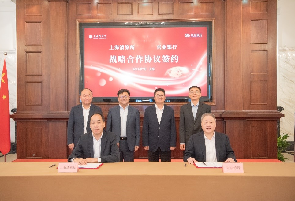 2024年7月31日,兴业银行董事长吕家进一行到访上海清算所调研、座谈并签署战略合作协议,上海清算所董事长马贱阳、总经理汪洪波出席活动并见证签约,兴业银行副行长张霆和上海清算所副总经理戴德毅代表双方签约。