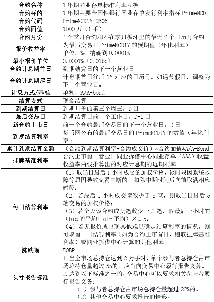 1年期同业存单标准利率互换合约要素
