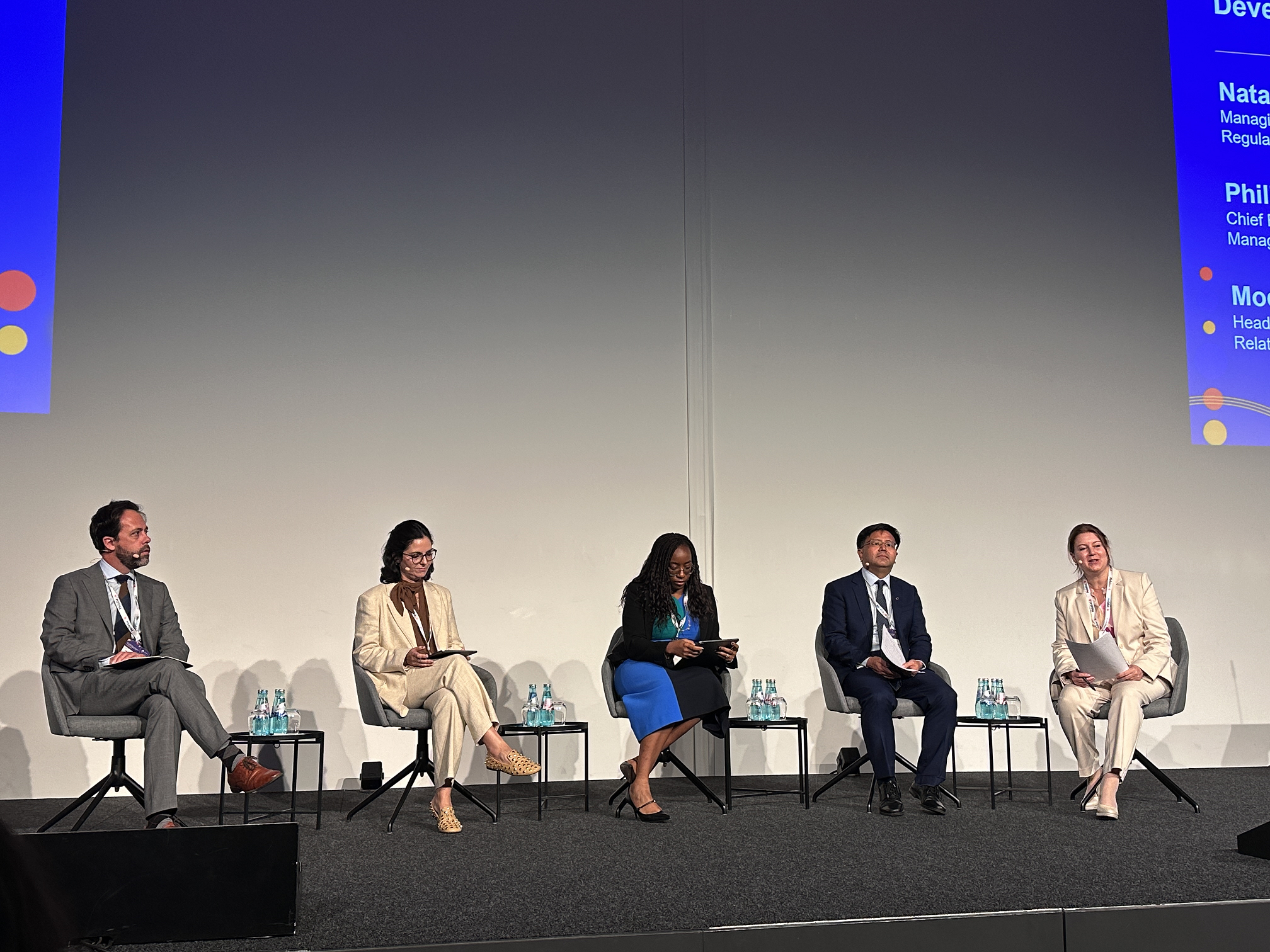 在“新兴经济体中债券市场的发展”专题讨论中,马贱阳董事长与Frontclear首席执行官Philip Buyskers、非洲金融集团资本市场与投资者关系主管Modupe Famakinwa等嘉宾一道,围绕新兴经济体债券市场战略发展任务、面临的挑战等进行了交流。马贱阳董事长结合熊猫债、玉兰债等业务,分享了中国债券市场双向开放情况,并重点介绍了近期我国债券市场“科创板”的建设进展。