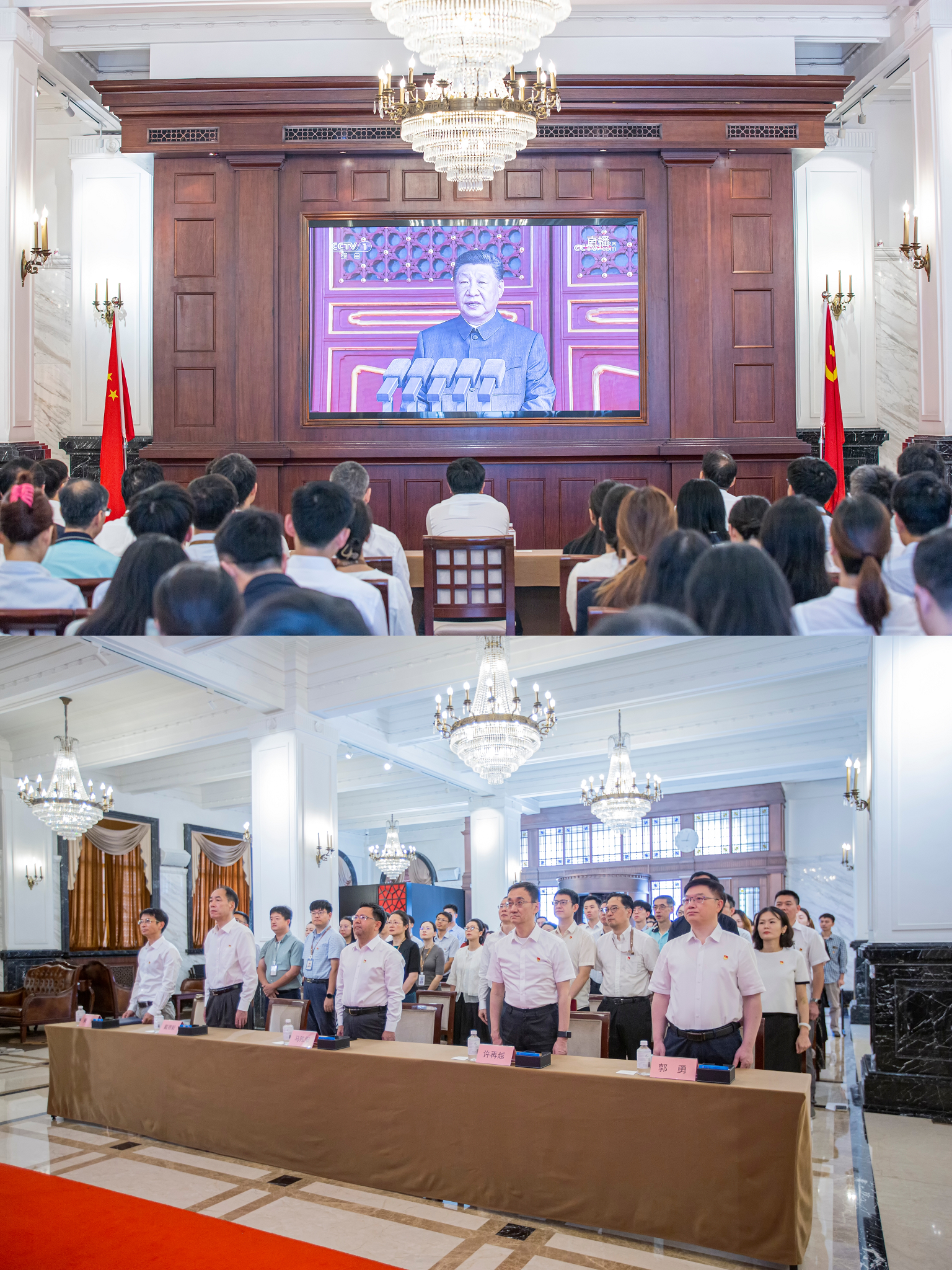 9月3日上午,公司组织干部职工集中观看纪念中国人民抗日战争暨世界反法西斯战争胜利80周年大会。全体干部职工第一时间聆听习近平总书记在大会上的重要讲话,深刻感悟中国人民以巨大的民族牺牲,为拯救人类文明、保卫世界和平作出的重大贡献,始终坚信中国人民解放军是党和人民完全可以信赖的英雄军队。盛大的阅兵仪式让大家为祖国的强大感到由衷的自豪与骄傲。一代人有一代人的使命与担当,面对实现中华民族伟大复兴的战略全局和世界百年未有之大变局,为更好服务央行履职和上海国际金融中心建设,上海清算所将始终坚持以习近平新时代中国特色社会主义思想为指导,持续深入学习贯彻习近平总书记重要讲话精神,将殷殷爱国情和金融报国心化作团结奋进的思想共识、攻坚克难的力量源泉,始终保持锐意进取的奋斗状态、一往无前的昂扬姿态,凝心聚力、砥砺前行,以金融基础设施高质量发展助力强国建设和民族复兴伟业!