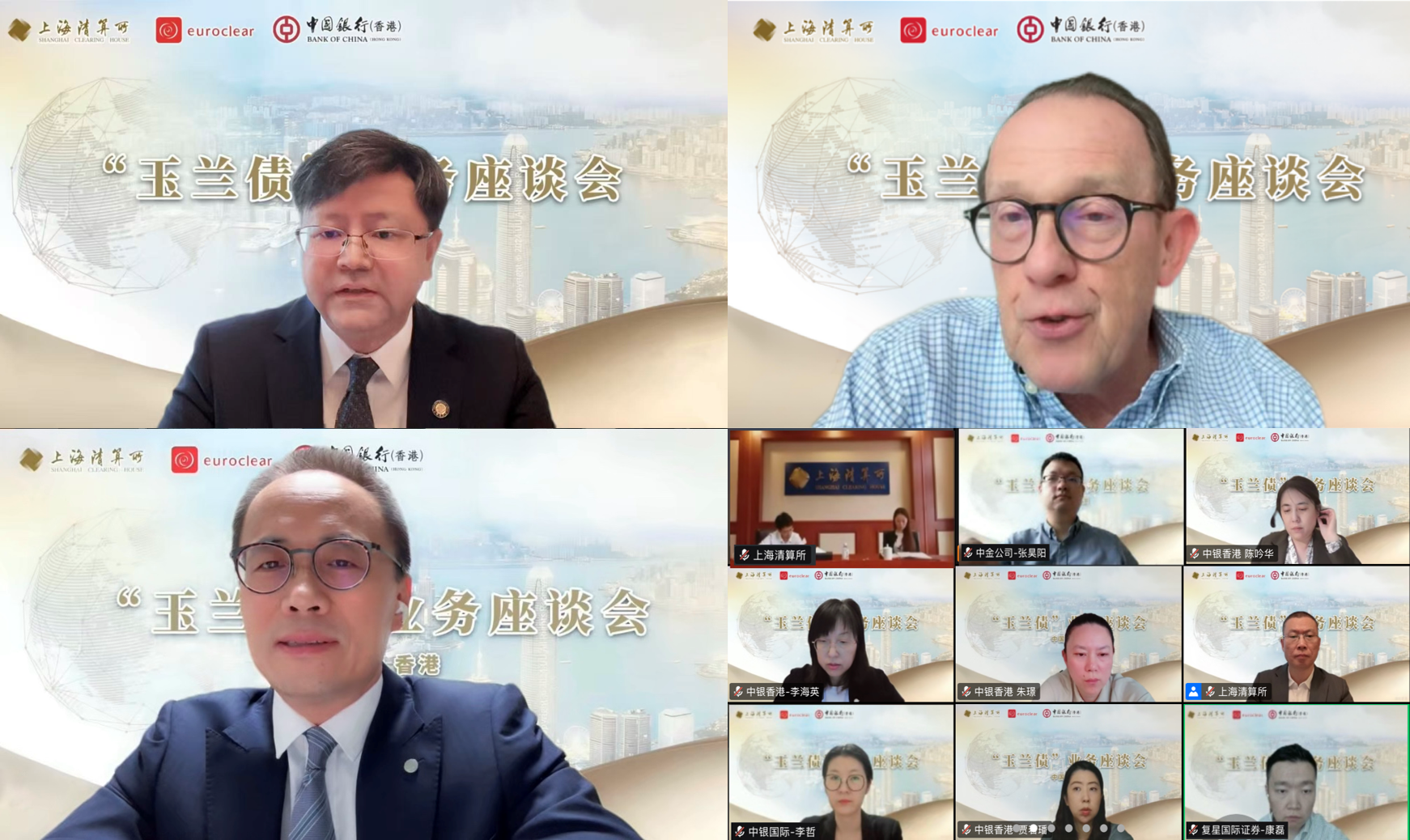 2025年9月24日,上海清算所联合欧清银行、中银香港,在香港共同举办“玉兰债”座谈会(线上)。上海清算所董事长马贱阳、欧清银行亚太区CEO Philippe Laurensy、中银香港副总裁王化斌致辞。中央政府驻港联络办经济部部长徐卫刚到会指导。来自中银香港、中金公司等多家在港银行、券商等金融机构的近50名代表参加会议。