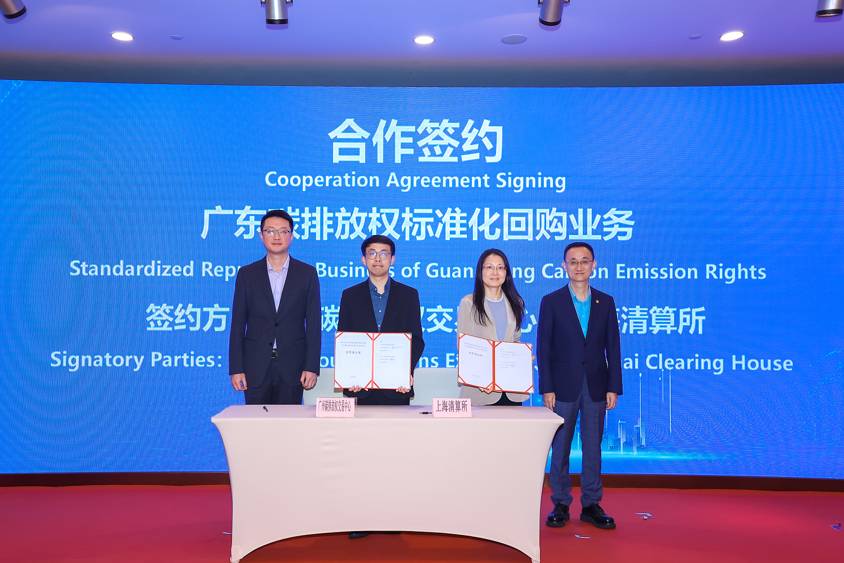 2025年9月23日,在中国碳市场大会区域碳市场创新发展研讨边会上,广州碳排放权交易中心和上海清算所就开展广东碳排放权标准化回购业务等合作签约,上海清算所总经理许再越、广州碳排放权交易中心董事长张争鸣见证签约。